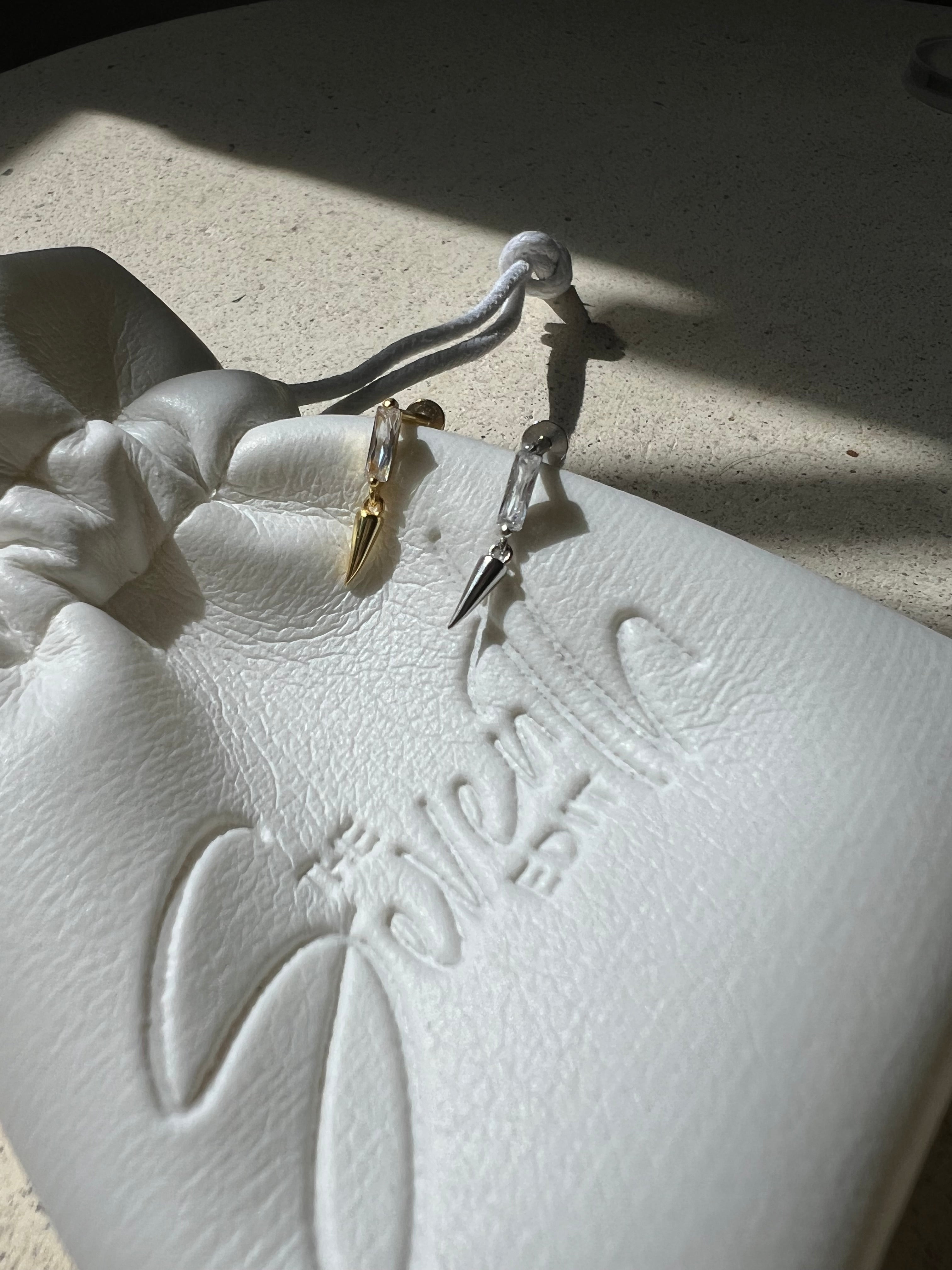 This Evelyn mini drop spiked is designed for cartliage piercings and available in your favourite plating. The little gem is a must have for anybody addicted to ear stacking. Trust me, your cartilage is begging for this touch of this magic. It's time to elevate your ear game, one stud at a time.
