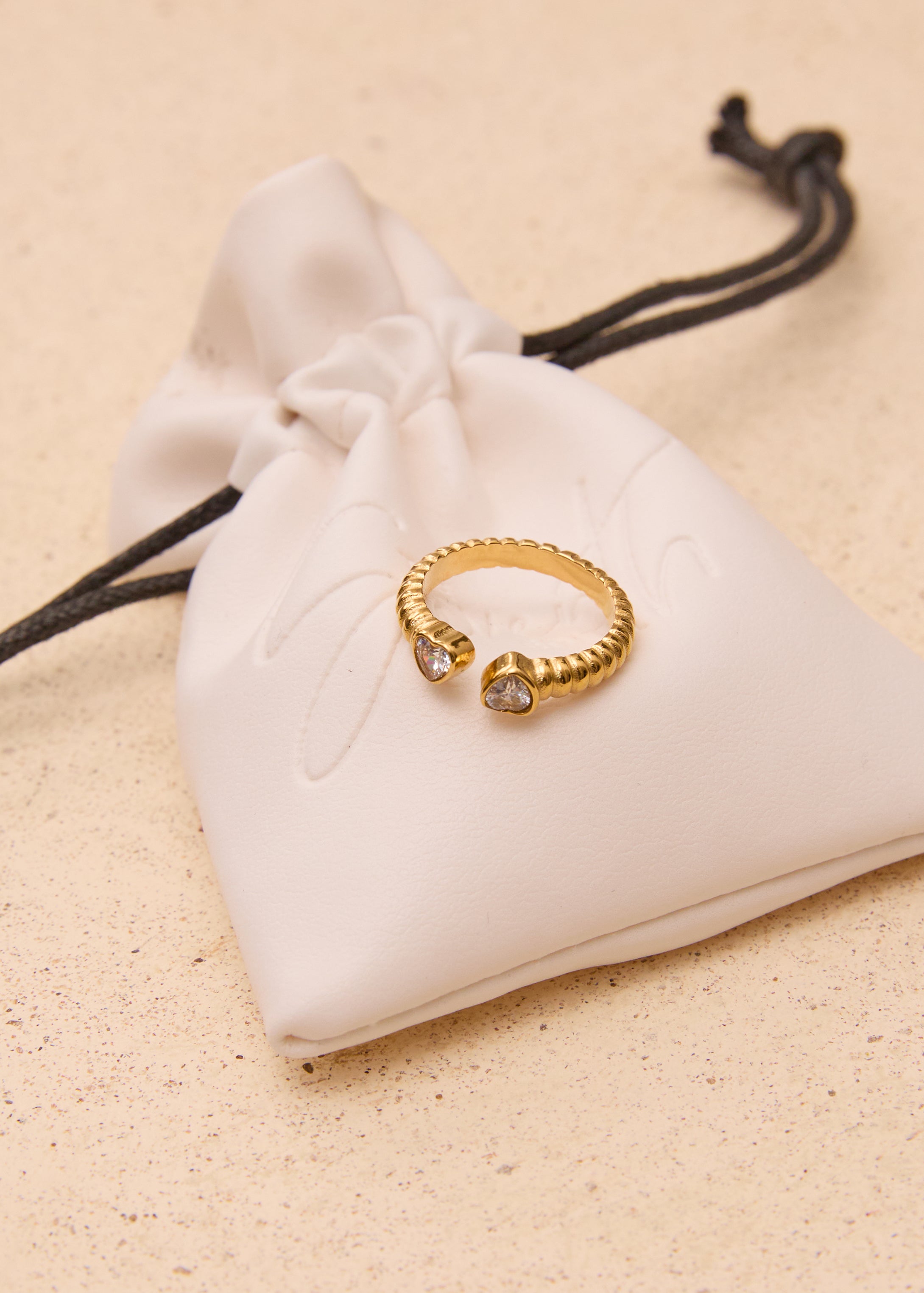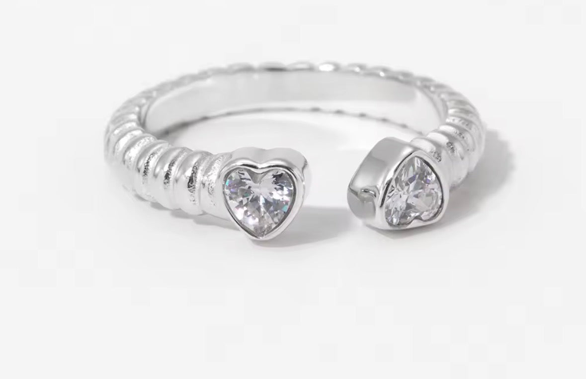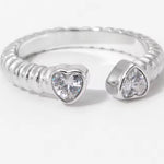 Fall in love with the details of our Heart Open Ring — a delicate yet eye-catching piece designed to add a romantic touch to your everyday jewellery stack. Featuring two sparkling heart-cut stones set on an adjustable open band, this ring is the perfect balance of softness and shine.