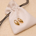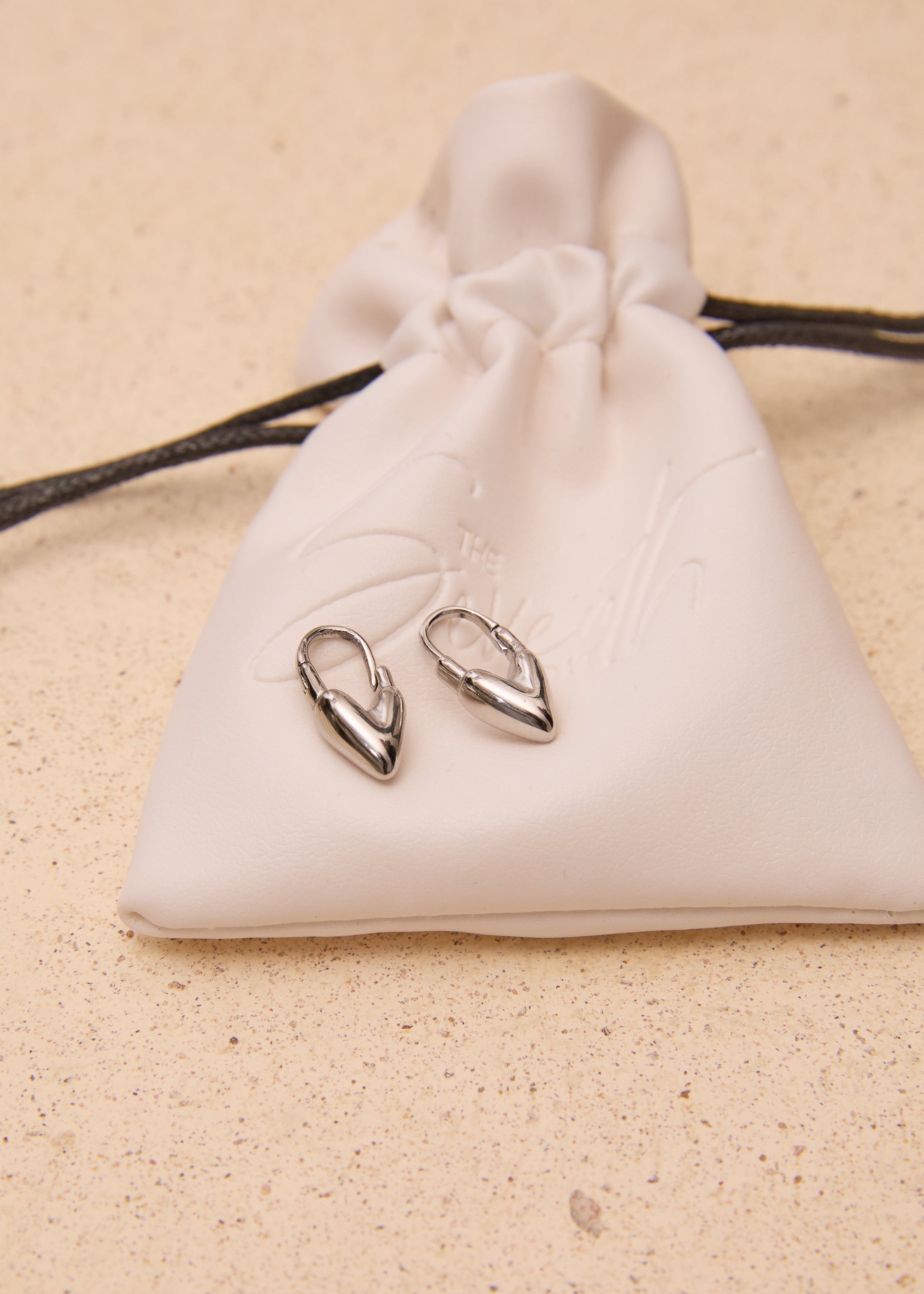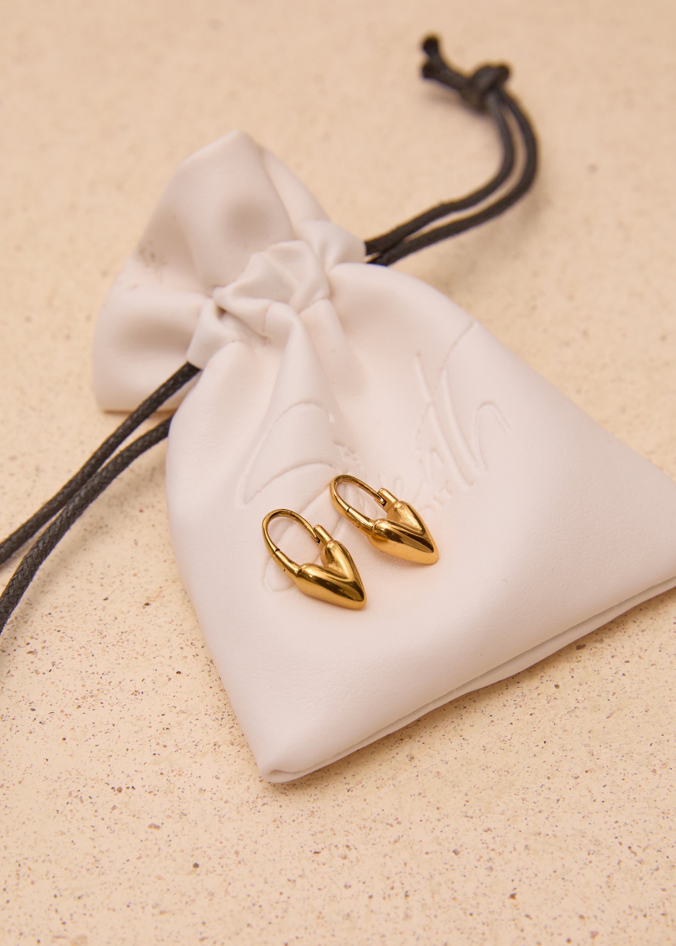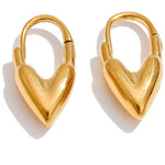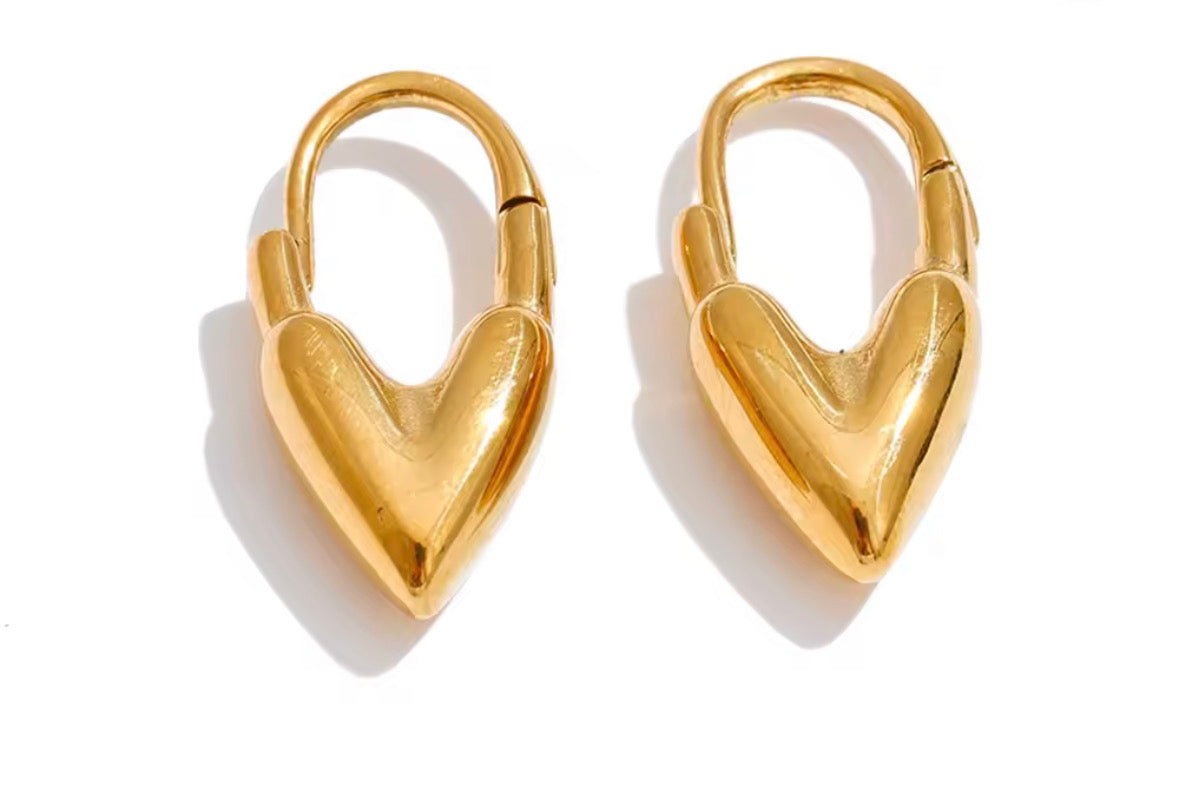 Designed with a puffed heart charm suspended from a sleek gold hoop, these small yet eye-catching earrings bring soft love-inspired styling to your everyday stack.