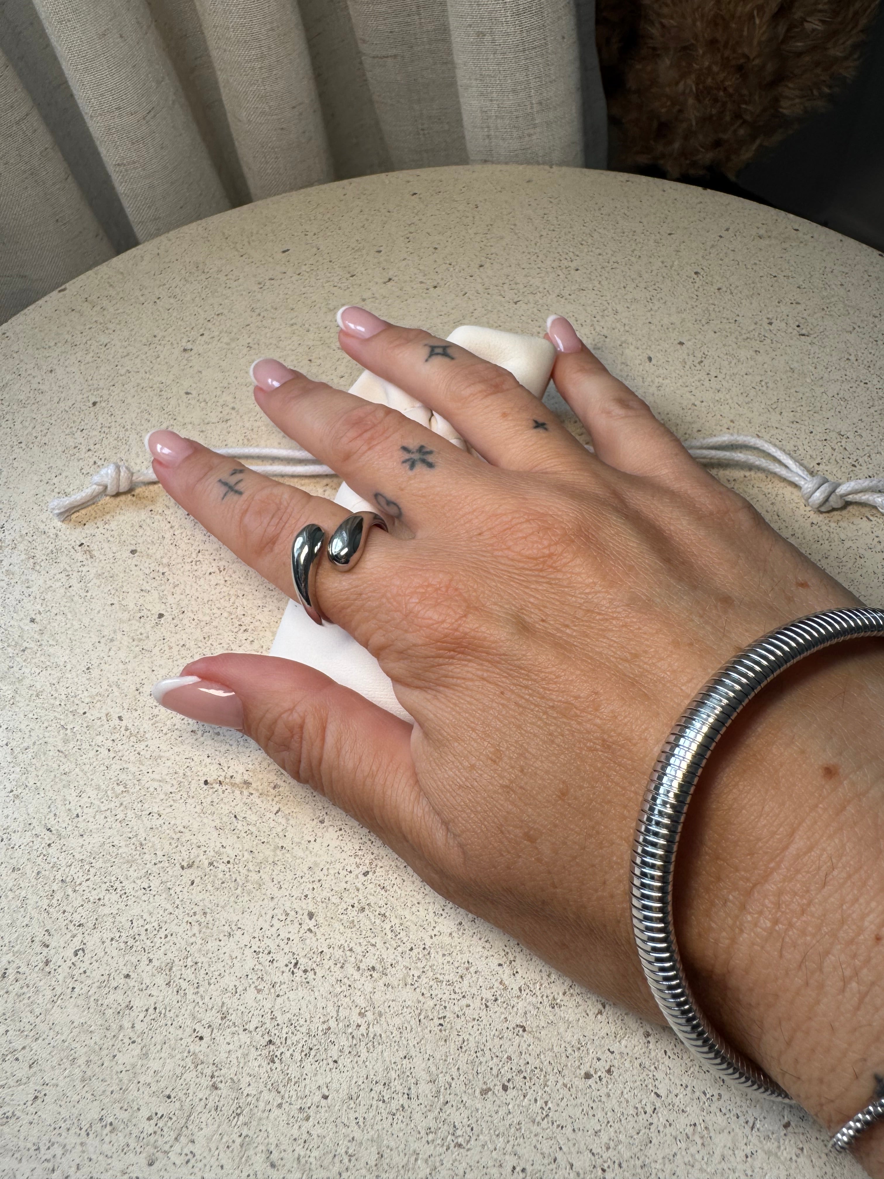 Bold curves. Modern minimalism. The Nina Ring is your go-to statement piece, designed with an open silhouette that wraps effortlessly around your finger. Available in gold and silver, its fluid shape adds instant edge and elegance to any look.