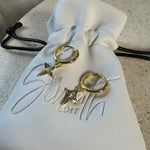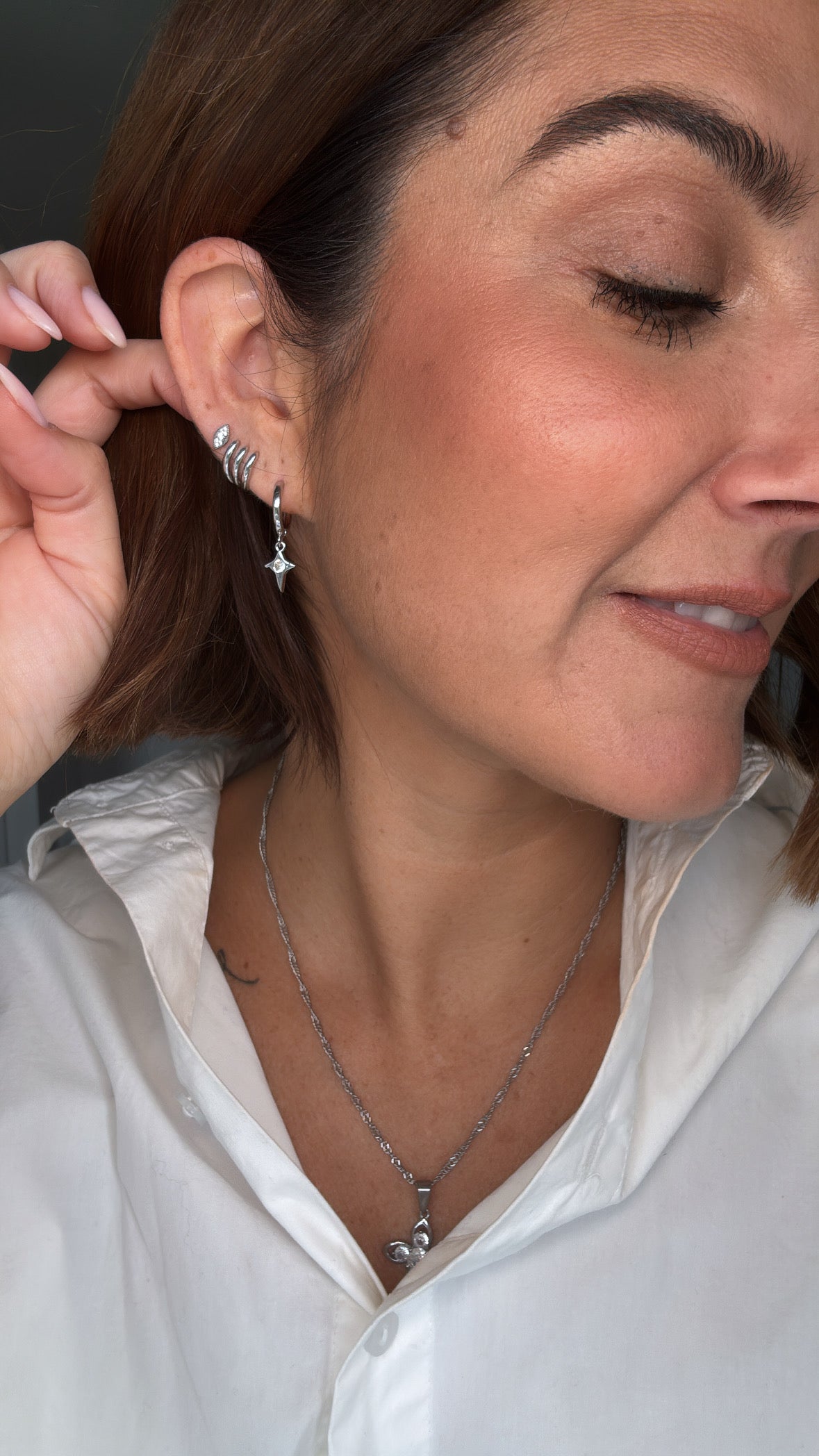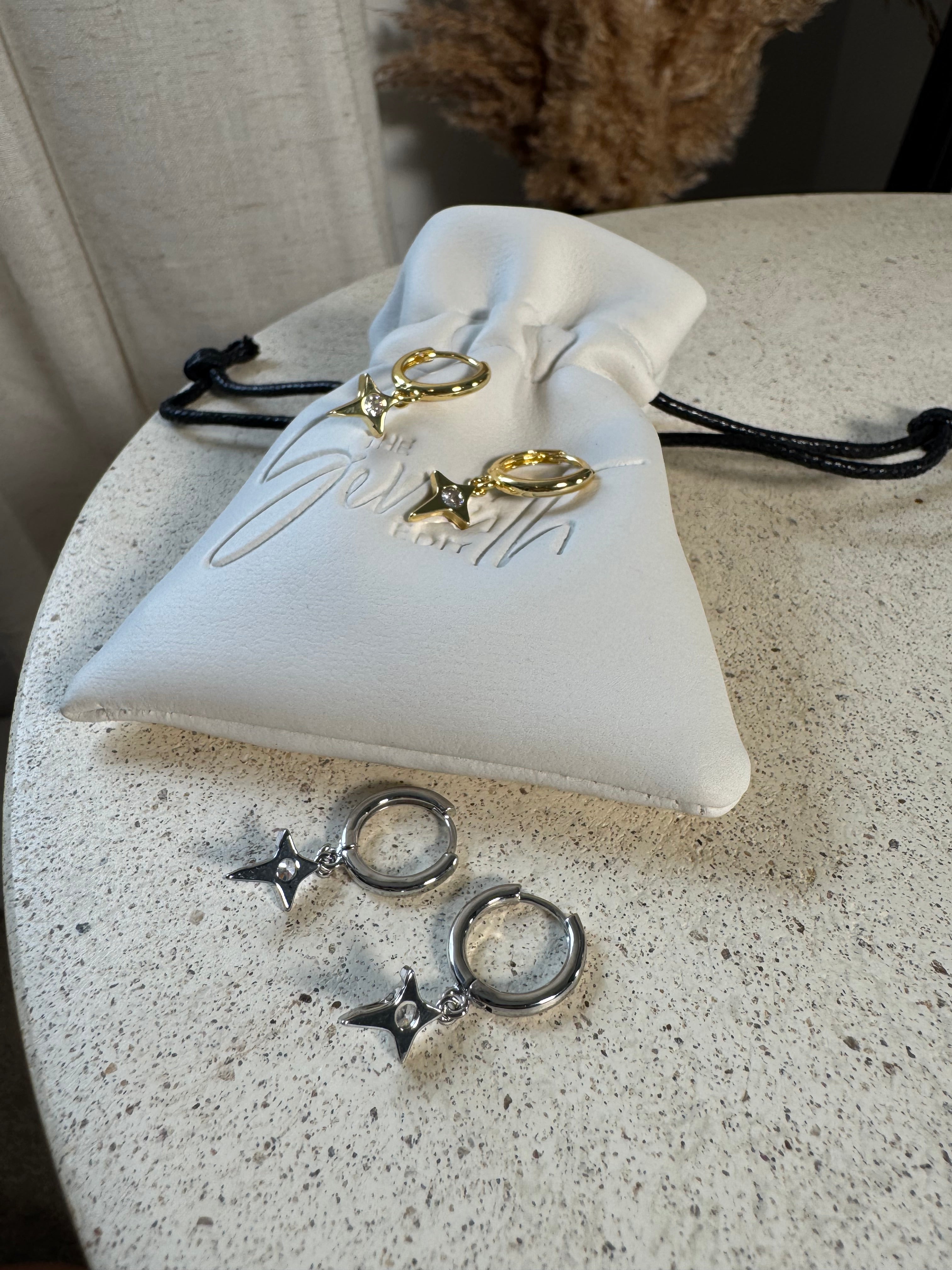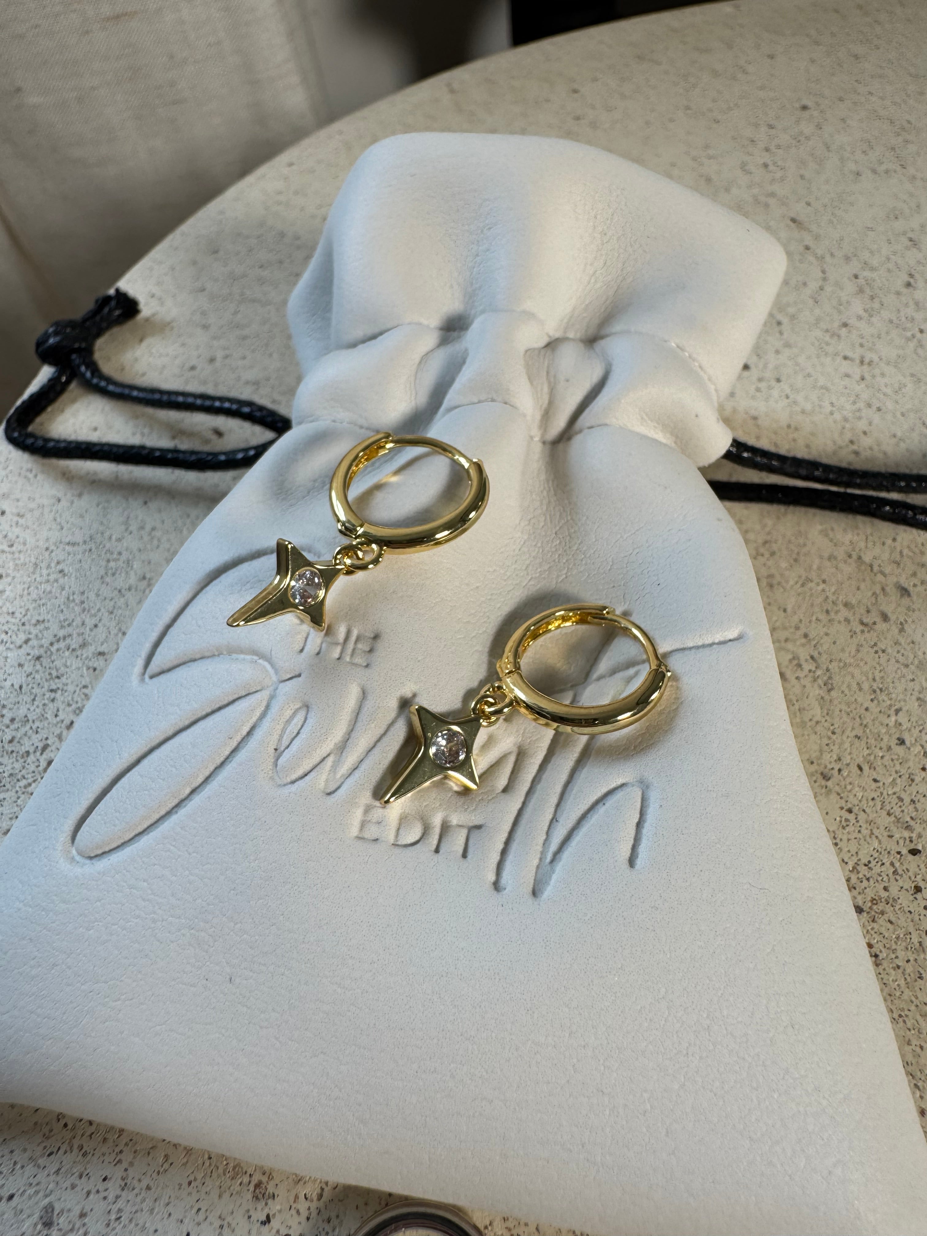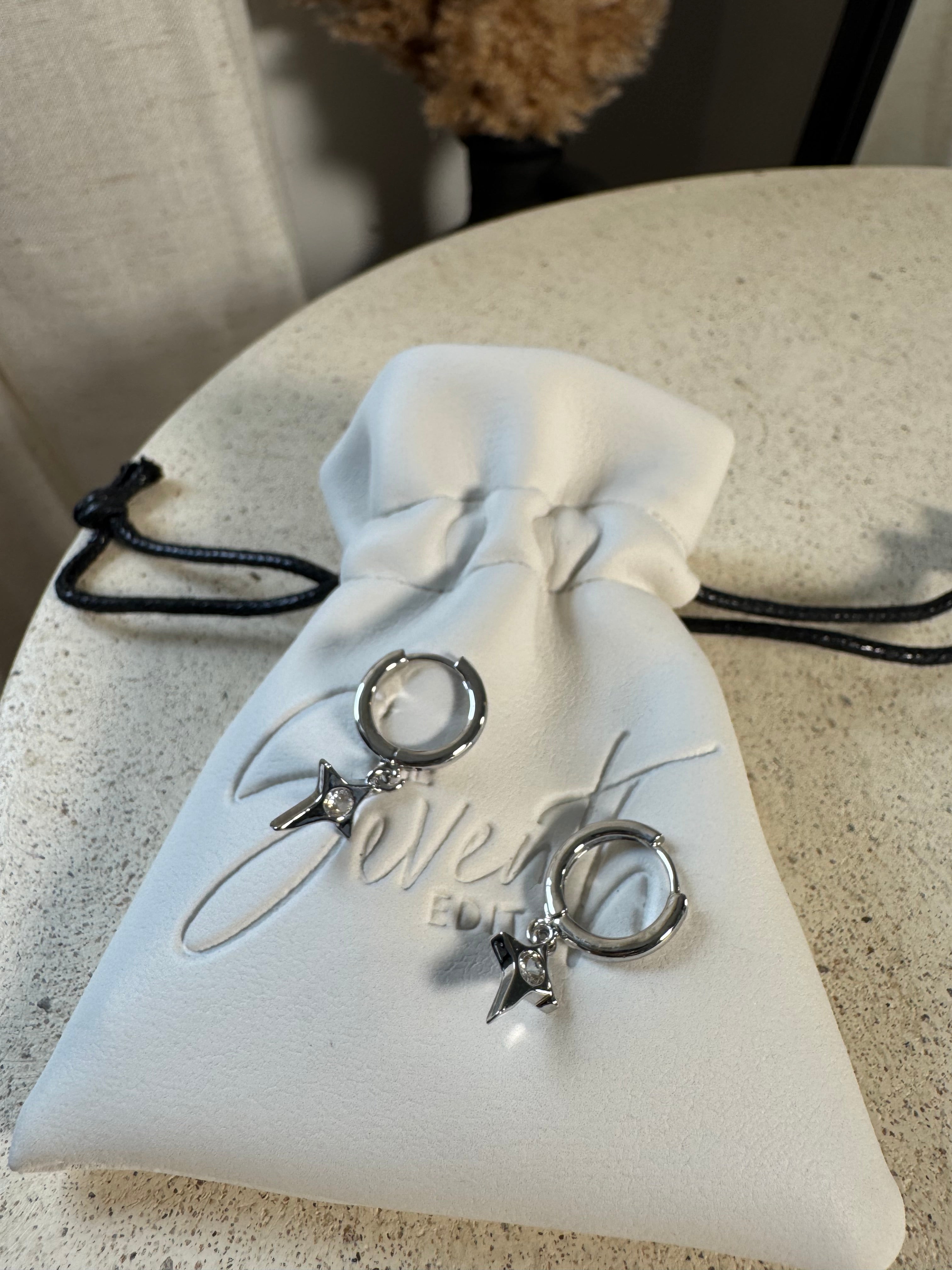 Featuring a sleek silver hoop and a delicate cross shaped charm with a sparkling stone, these earrings bring a subtle yet striking celestial touch to your look. Perfect for both casual wear and special occasions, they’re a must-have accessory for any jewellery lover.