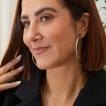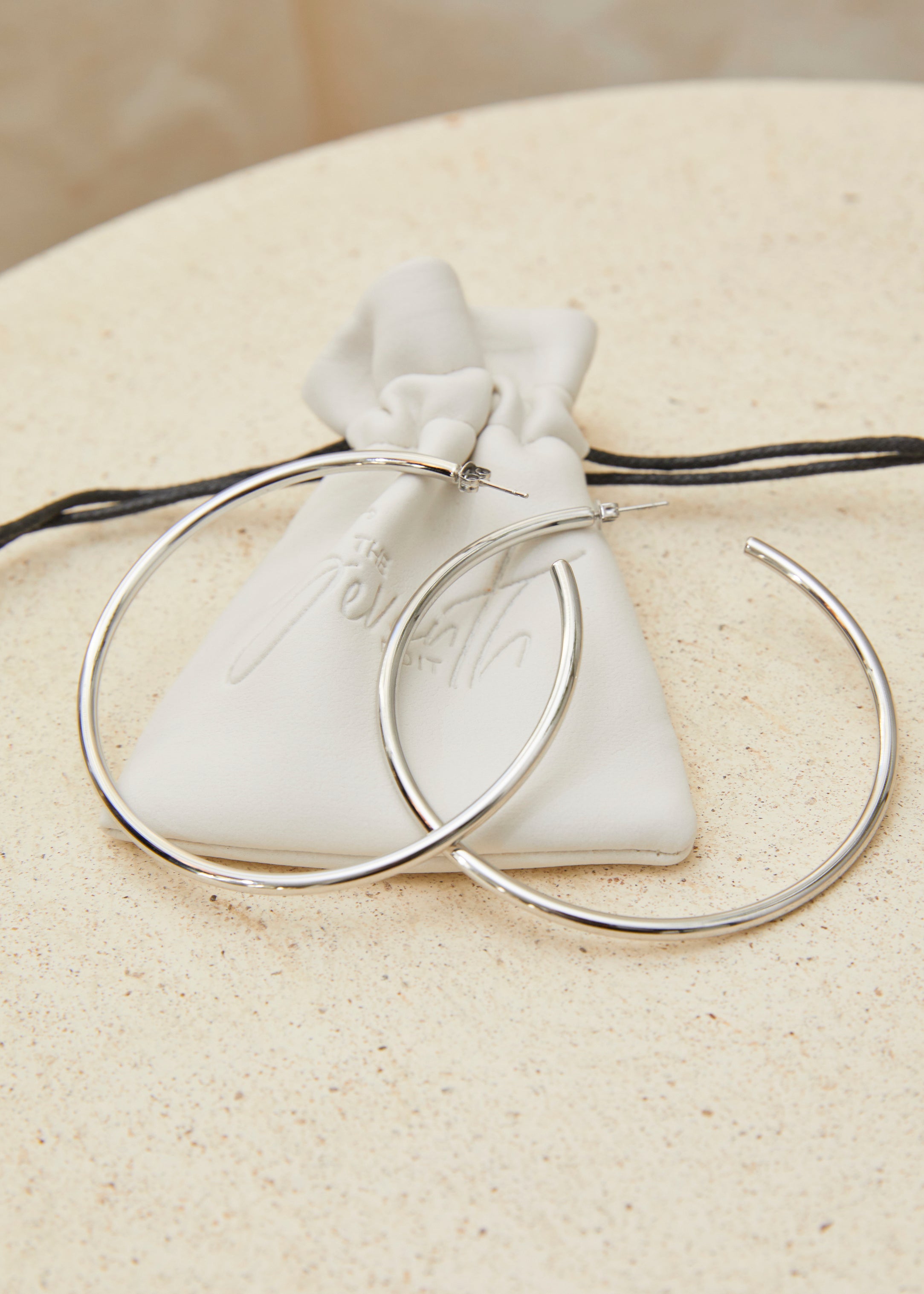 Your ultimate wardrobe hoop. These oversized, slimline hoops are designed to make a statement while staying effortlessly wearable. Ultra-lightweight with a sleek polished finish, they add instant impact to any outfit — from casual daytime fits to night-out looks.