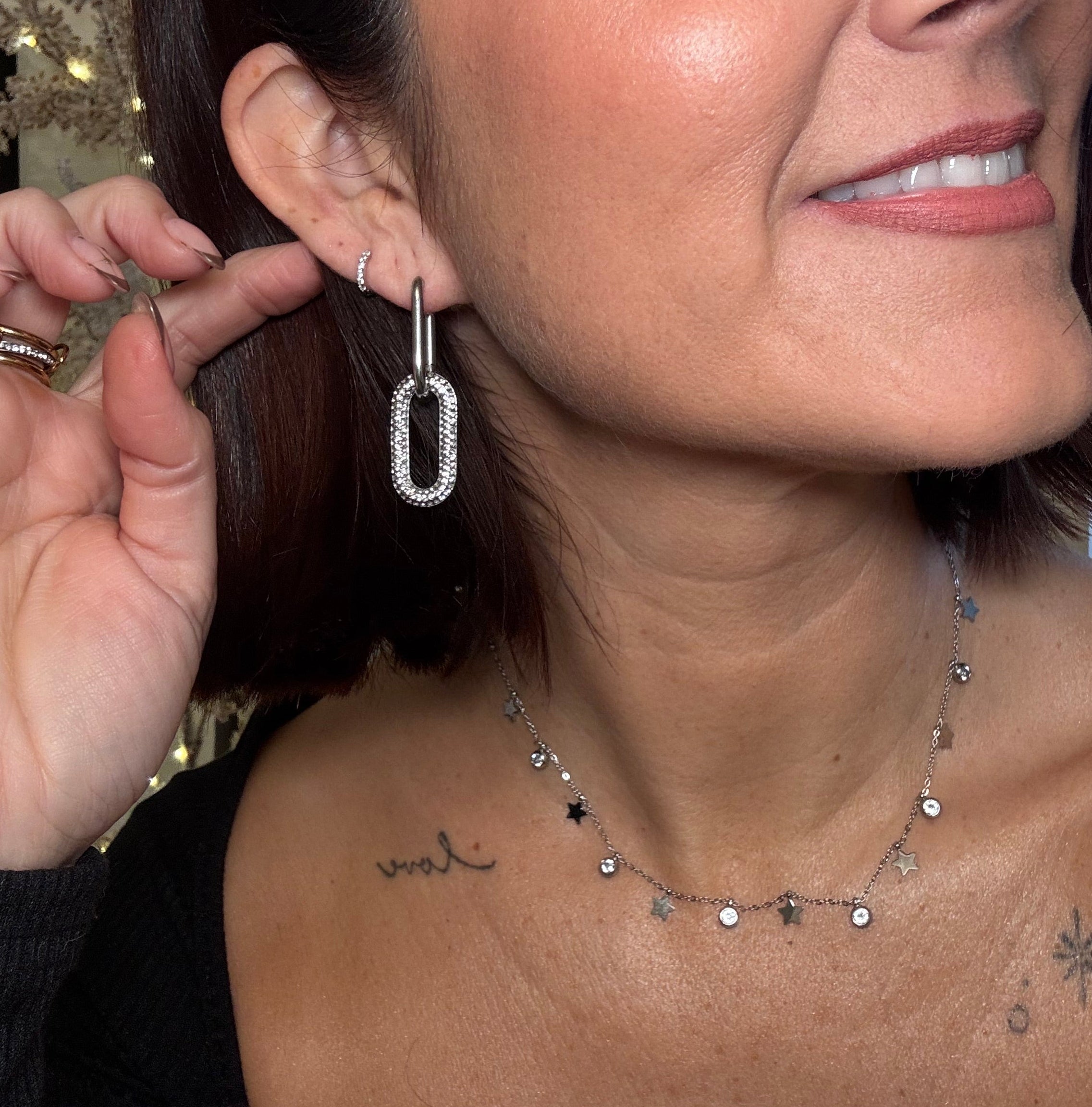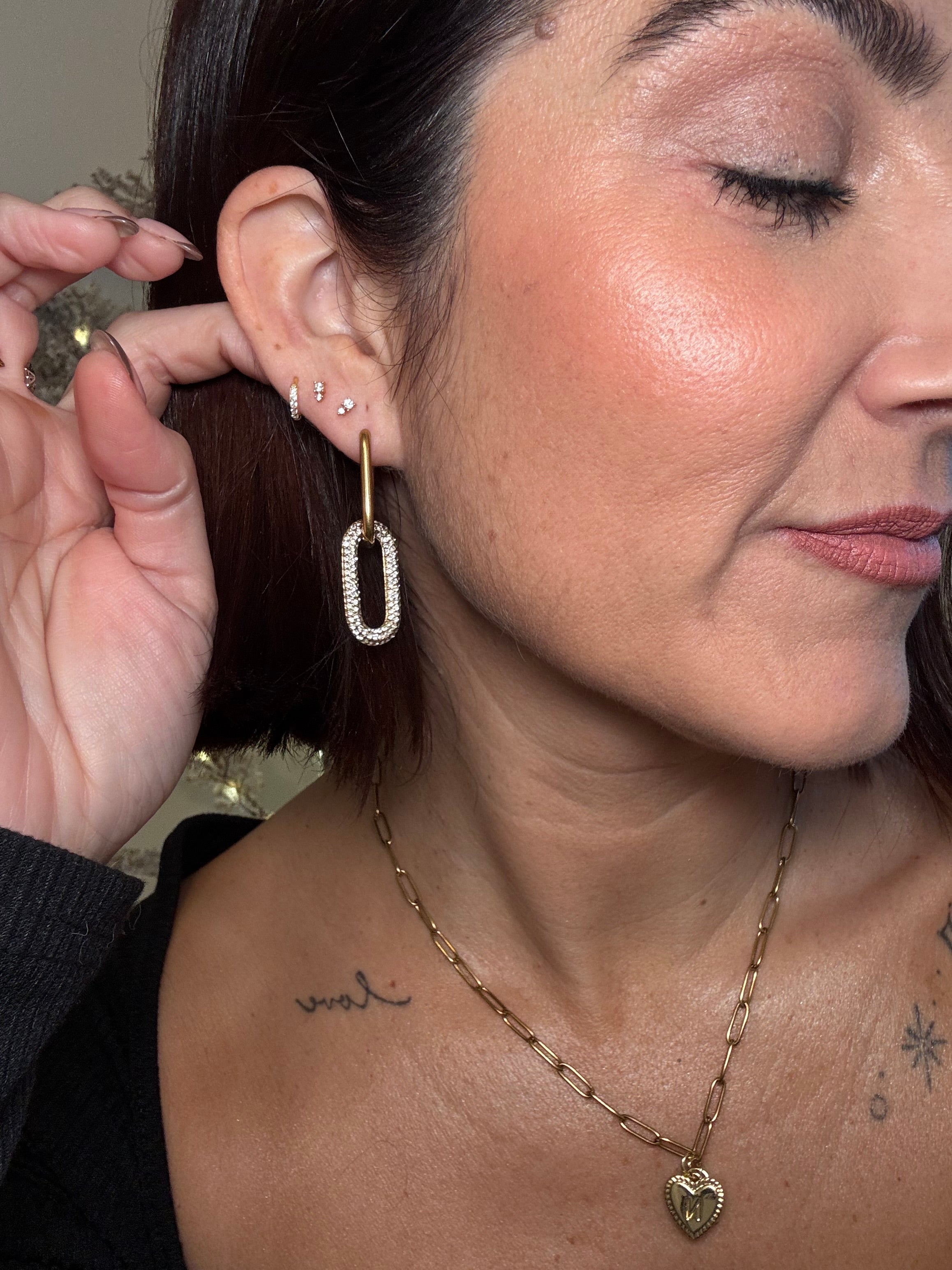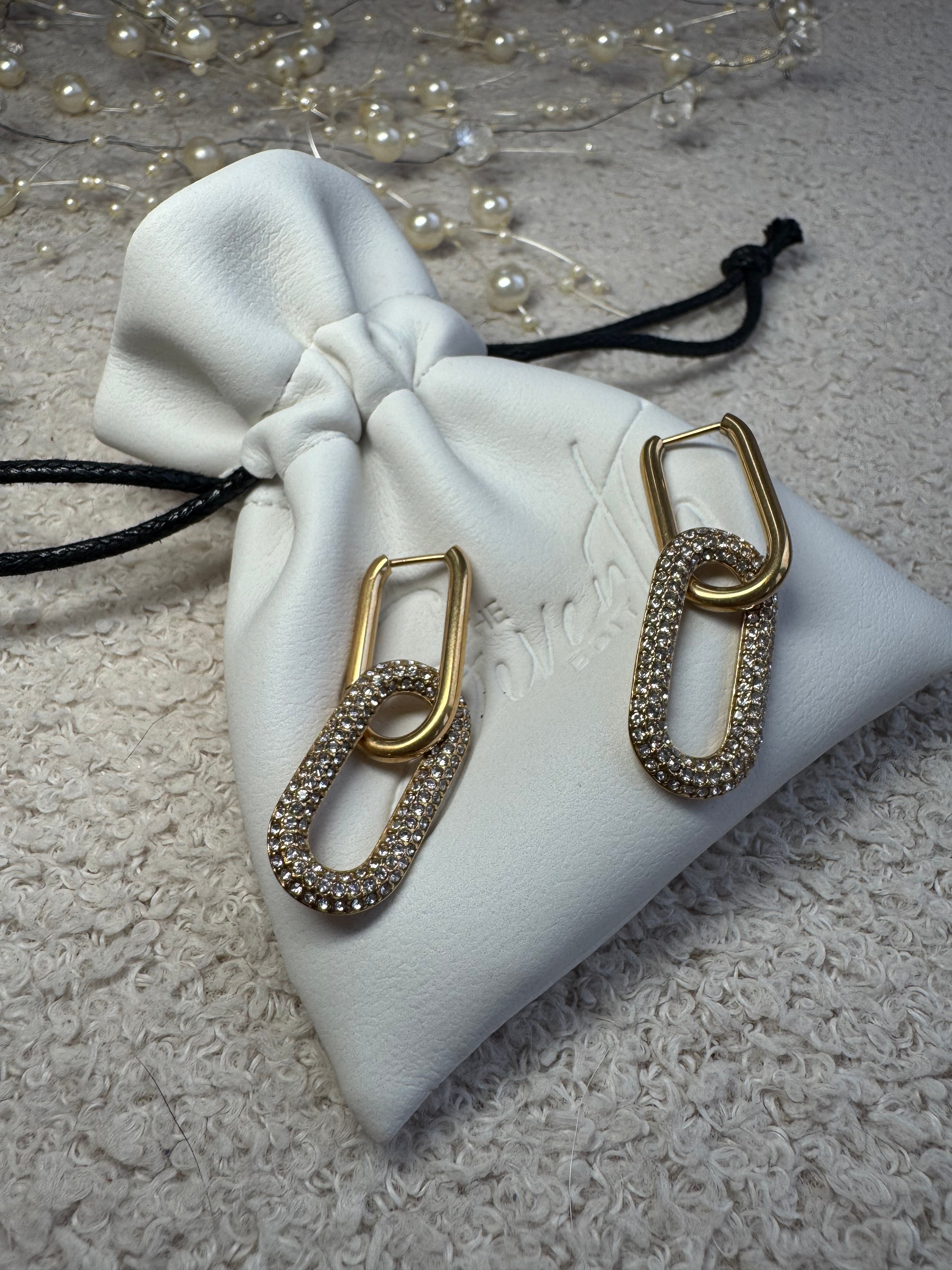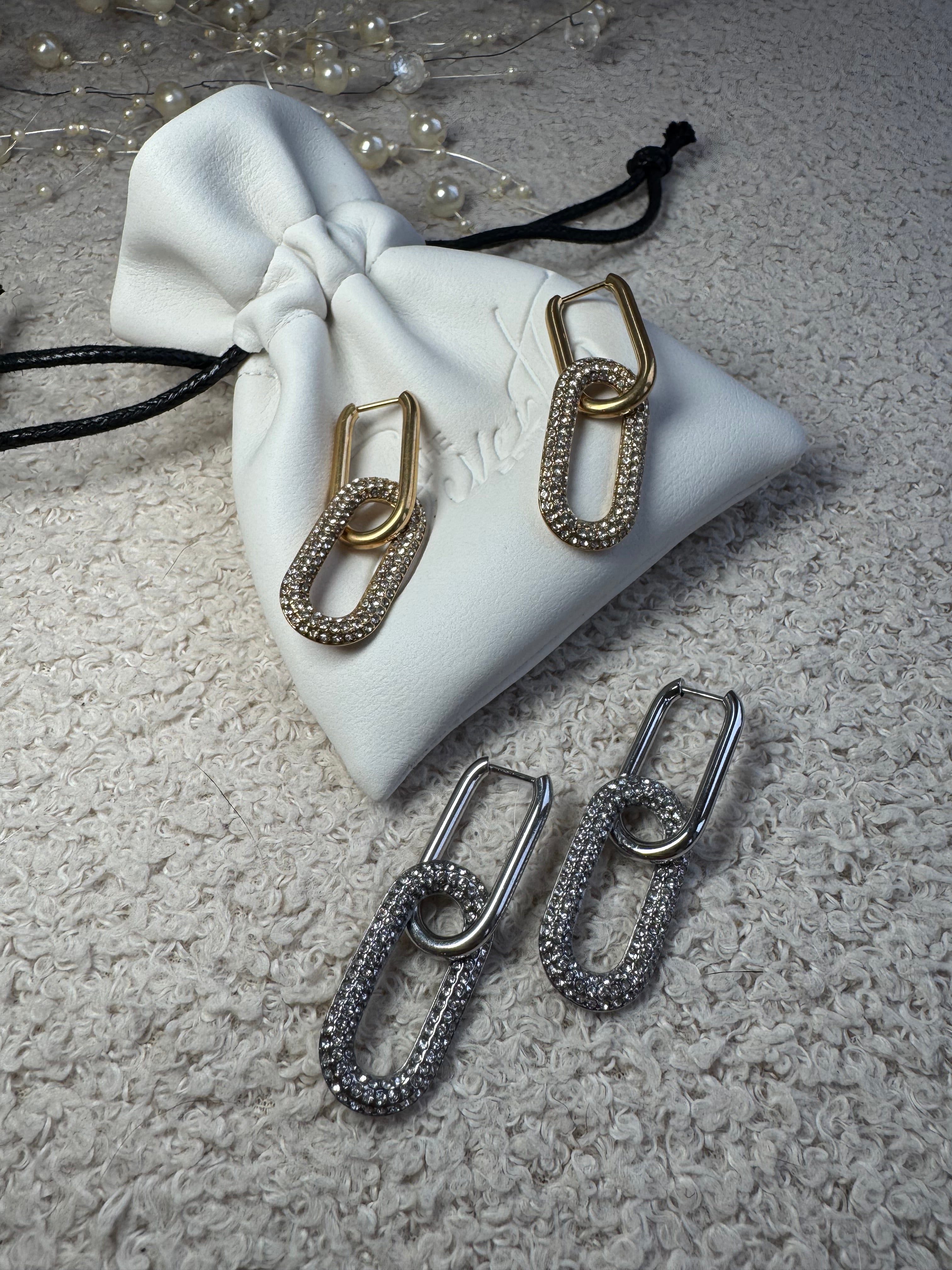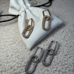 Meet your new go-to statement earrings, now with a detachable link for customisable styling. These on-trend crystal link drops blend bold design with everyday versatility. Wear them long and sparkly for a statement moment, or remove the bottom link for a chic, minimal look.Available in both gold and silver, they add instant polish to any outfit, without the luxury price tag.