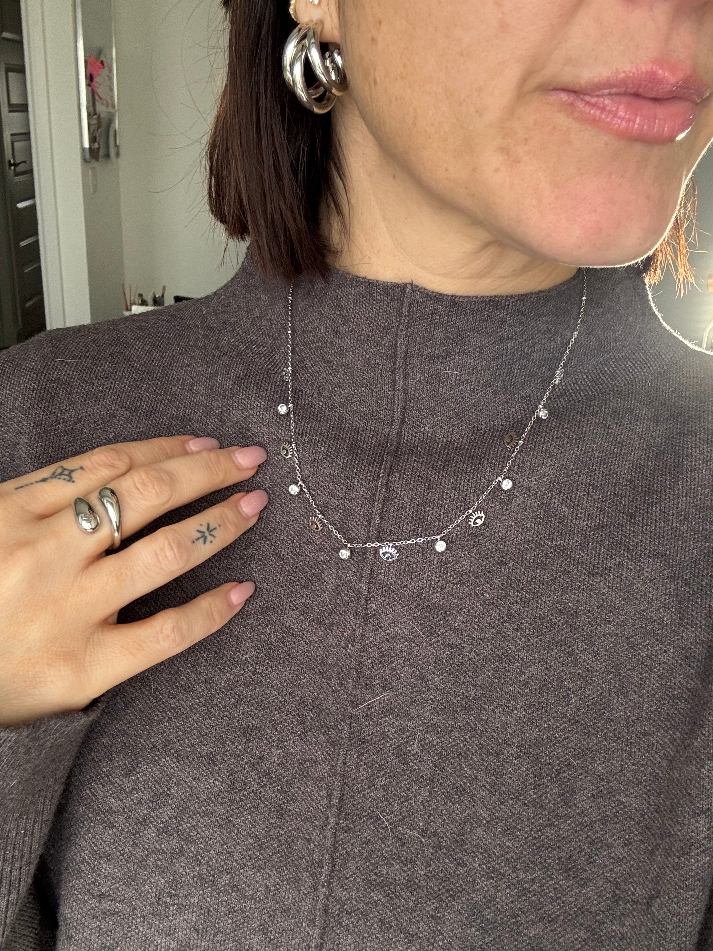 Protect your glow this season with our Soraya Evil Eye Necklace — a delicate yet powerful piece adorned with shimmering evil eyes and tiny diamond-like stones. Symbolizing protection, intuition, and clarity, this necklace is your everyday shield wrapped in summer sparkle.