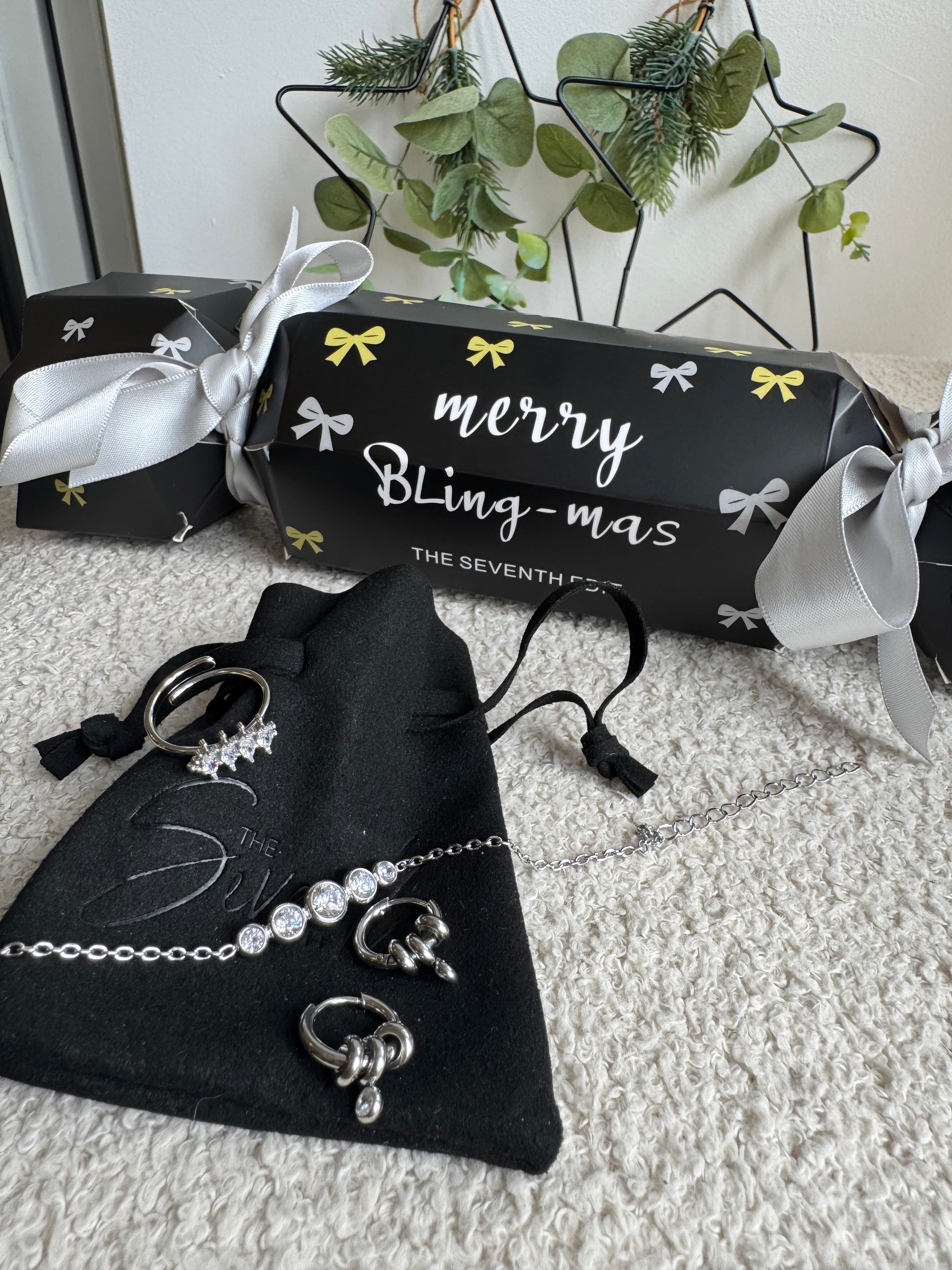 Unwrap a little sparkle this festive season with our elegant Christmas Jewellery Cracker. Inside, you’ll find a beautifully coordinated trio of timeless pieces – a bracelet, ring, and earrings – designed to add effortless glamour to any occasion.