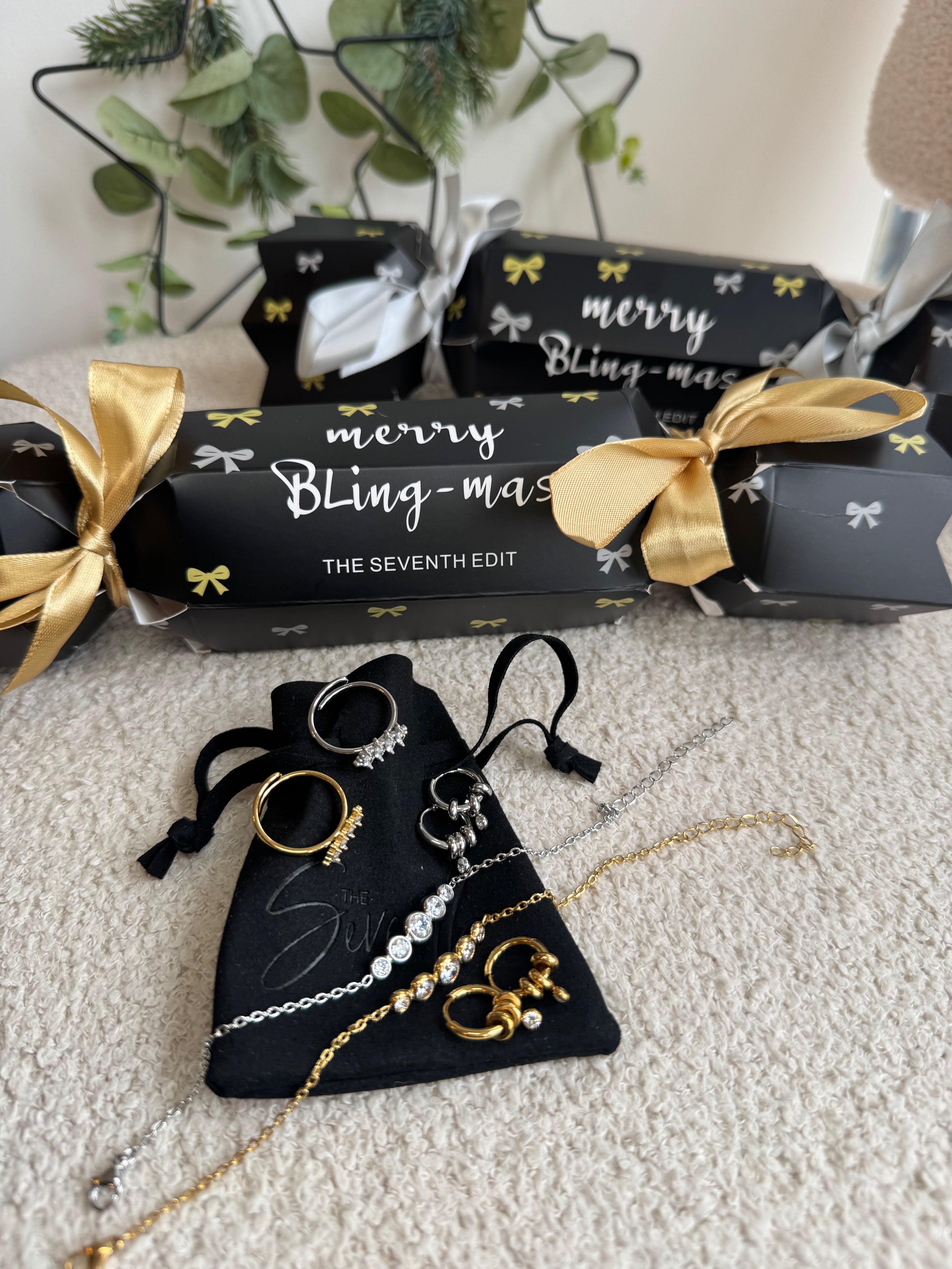 Perfect for storing your jewellery, receive a limited edition The Seventh Edit pouch inside the Christmas crackers