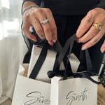 Introducing The Seventh Edit gift bags available in two sizes that will elevate your gift-giving game. Made from high-quality materials, our gift bags are durable and sturdy, ensuring your precious bling is safe and secure. The sleek design and monochrome colour palette make it perfect for any occasion, from birthdays to weddings and everything in between.